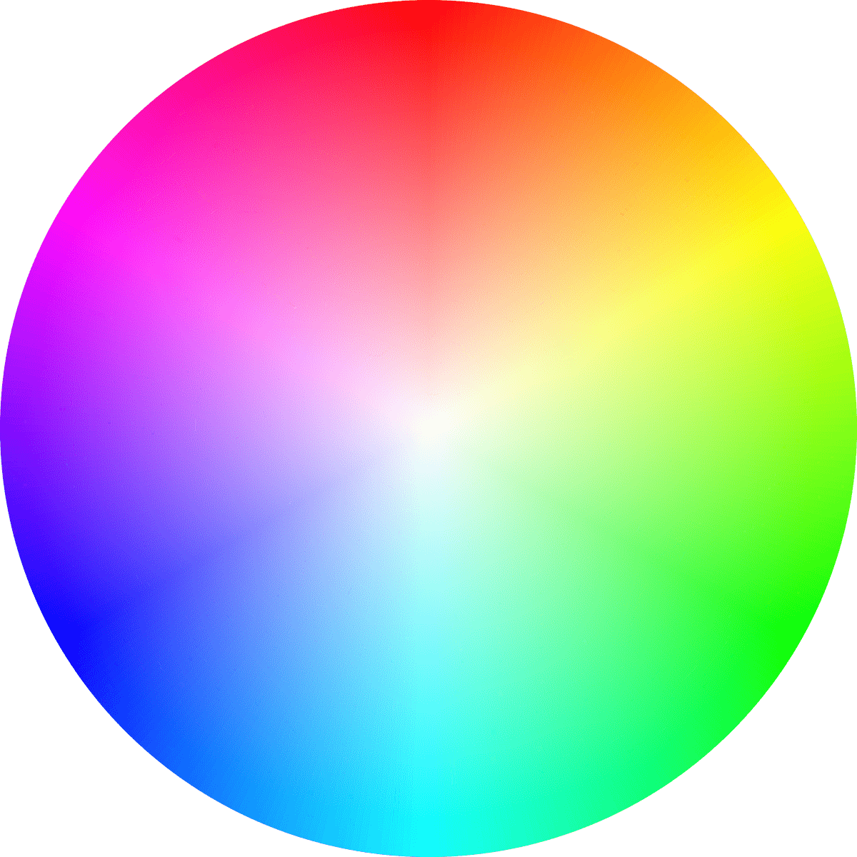 - Hue тј. нијанса која представља положај боје у кругу од 0° до 360°, где је 0° црвена, 120° зелена и 240° плава боја, а остале боје се налазе између ових тачака,